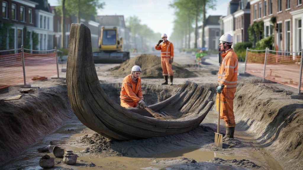 Wijk bij Duurstede, eine ruhige Stadt rund 20 Kilometer südöstlich von Utrecht. Kanalarbeiter erneuern eine Leitung in der Straße „Promenade“